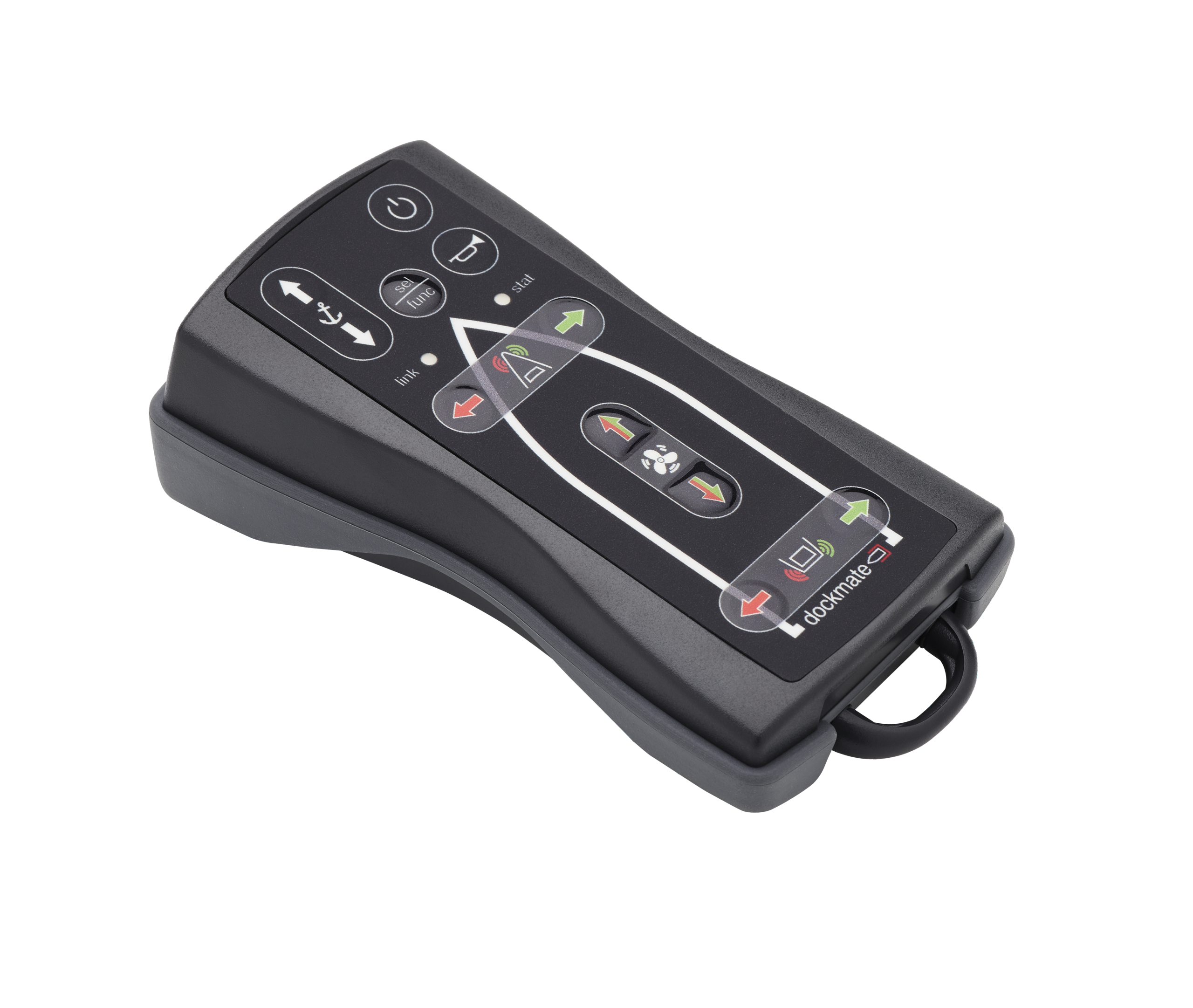 Dockmate SINGLE+, de ideale draadloze afstandbediening voor 1-motor schepen, eventueel voorzien van boeg- en/of hekschroef (aan-uit).