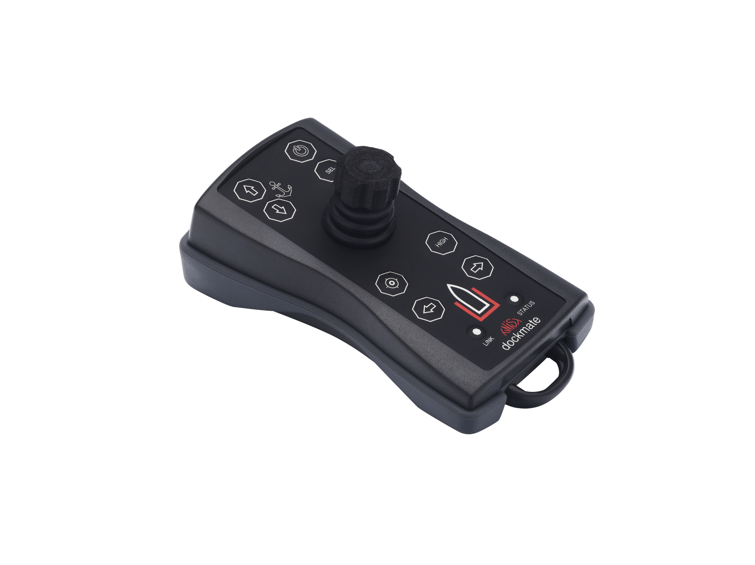 Draadloze remote voorzien van unieke Twist joystick. Geschikt voor boten met 1 hoofdmotor en PROportioneel bedienbare boeg- en/of hekschroeven.