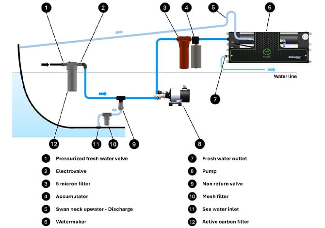 • Watermaker fitted with Energy Recovery System
