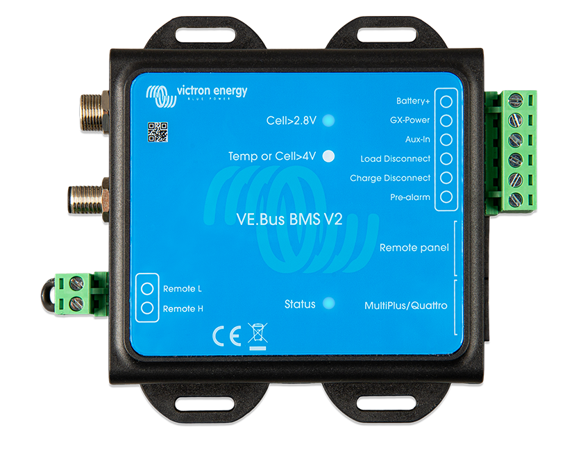 De VE.Bus BMS en VE.Bus BMS V2 zijn accubeheersystemen (BMS), ontworpen als interface met, en bescherming van, één of meerdere Lithium Battery Smart 12,8 V & 25,6 V-accu’s (LiFePO4 of LFP) in systemen met Victron omvormers of omvormer/laders uitgerust met VE.Bus-communicatie. Ten opzichte van de VE.BUS BMS kan de V2 ook communiceren met Victron GX-systemen.